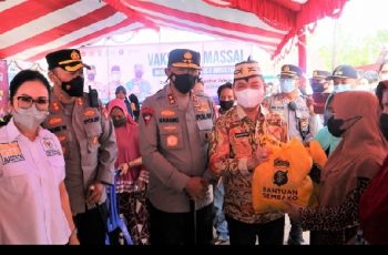 Kapuas Kalteng – jurnalpolisi.id Kapolda Kalteng Irjen Pol Drs. Nanang Avianto, M.Si. dan Dirbinmas Polda Kalteng Kombes Pol Ebet Gunandar, S.I.K. didampingi Bupati Kapuas Ir. Ben Brahim S. Bahat, M.M., M.T bersama Ibu Ary Egahni Ben Bahat, S.H., M.H selaku anggota Komisi III DPR RI serta Forkopimda Kab. Kapuas mengikuti secara virtual Zoom Meeting Pelaksanaan Vaksinasi serentak seluruh Indonesia yang dipantau langsung oleh Kapolri Jenderal Polisi Drs. Listyo Sigit Prabowo, M.Si., Jumat (25/2/2022). Kapolri Jenderal Polisi Drs. Listyo Sigit Prabowo, M.Si dalam kesempatan tersebut mengungkapkan melalui zoom meeting ini Kapolri mengecek progres vaksinasi sebagai upaya mencapai target harian dengan harapan dapat mencapai 1.000.611 per harinya. “Kapolri mengungkapkan bahwa akselerasi percepatan pemanfaatan Astrazeneca untuk terus ditingkatkan dan dilaksanakan oleh seluruh jajaran karena masa pakai yang terbatas,” ucap Kapolda mengutip arahan Kapolri. Lanjut Kapolri, diharapkan Polda berjenjang ke tingkat Polres hingga Polsek jajaran yang ada di seluruh Indonesia agar terus melakukan vaksinasi kepada masyarakat dengan strategi Door to Door, selalu ingatkan kepada masyarakat untuk selalu menerapkan Prokes ketat saat melaksanakan aktivitas di luar rumah dengan memakai masker dan utamakan lansia untuk menjadi prioritas karena varian Omnicron rawan bagi lansia yang memiliki riwayat penyakit bawaan. Sementara itu, Kapolda Kalteng Irjen Pol Drs. Nanang Avianto, M.Si., menyampaikan bahwa untuk kesekian kalinya pihaknya melakukan virtual meeting untuk mendengar arahan pimpinan Polri terkait akselerasi vaksinasi. Sebelum pelaksanaan zoom meeting, Kapolda Kalteng dengan didampingi Kapolres Kapuas AKBP Qori Wicaksono, S.I.K. meninjau pelaksanaan vaksinasi oleh tim vaksinator Polres Kapuas bagi masyarakat umum di halaman Masjid Nurul Huda Jalan Sei Beras Kel. Selat Hulu Kec. Selat Kab. Kapuas, Kalteng. “Sebagai wujud kepedulian terhadap sesama, kami juga menyerahkan bantuan sembako kepada masyarakat yang menerima vaksin dan tali asih kepada tenaga kesehatan yang melaksanakan vaksin,” tutup Kapolda. (AP. 86)
