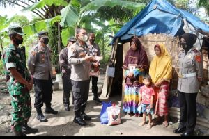 Aveh Timur – jurnalpolisi.id Kapolres Aceh Timur AKBP Mahmun Hari Sandy Sinurat, S.I.K. melakukan kunjungan ke rumah Kartini di Dusun Alue Lipah, Desa Buket Bata, Kecamatan Pantee Bidari dan peninjauan lokasi tanah yang akan dibangun rumah dhuafa bantuan Polres Aceh Timur. Didampingi sejumlah pejabat utama Polres Aceh Timur dan Kapolsek Pantee Bidari Iptu JM Tambunan, S.H. Kapolres juga menyerahkan bantuan sembako dan tali asih kepada Kartini. Dalam kunjungannya Kapolres mengaku prihatin dengan keadaan Kartini yang menghidupi kedua anaknya sendirian. Dengan kondisi rumah yang sangat tidak layak huni di atas tanah milik PT. Asera Sagosa. “Sudah dilakukan koordinasi dengan perangkat desa dan warga setempat, dan telah disiapkan lahannya oleh pak geuchik yang tak jauh dari lokasi tempat tinggal sebelumnya” ungkap Kapolres. “Insya Allah pembangunan dilaksanakan minggu depan.” Pungkas AKBP Mahmun Hari Sandy Sinurat, S.I.K.( Zai)