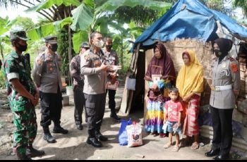 Aveh Timur – jurnalpolisi.id Kapolres Aceh Timur AKBP Mahmun Hari Sandy Sinurat, S.I.K. melakukan kunjungan ke rumah Kartini di Dusun Alue Lipah, Desa Buket Bata, Kecamatan Pantee Bidari dan peninjauan lokasi tanah yang akan dibangun rumah dhuafa bantuan Polres Aceh Timur. Didampingi sejumlah pejabat utama Polres Aceh Timur dan Kapolsek Pantee Bidari Iptu JM Tambunan, S.H. Kapolres juga menyerahkan bantuan sembako dan tali asih kepada Kartini. Dalam kunjungannya Kapolres mengaku prihatin dengan keadaan Kartini yang menghidupi kedua anaknya sendirian. Dengan kondisi rumah yang sangat tidak layak huni di atas tanah milik PT. Asera Sagosa. “Sudah dilakukan koordinasi dengan perangkat desa dan warga setempat, dan telah disiapkan lahannya oleh pak geuchik yang tak jauh dari lokasi tempat tinggal sebelumnya” ungkap Kapolres. “Insya Allah pembangunan dilaksanakan minggu depan.” Pungkas AKBP Mahmun Hari Sandy Sinurat, S.I.K.( Zai)