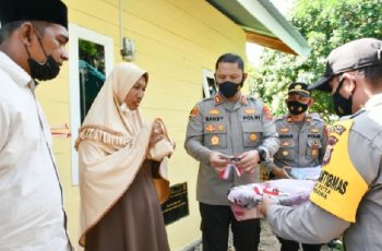 Kapolres Aceh Timur Serahkan Bantuan Rumah Dhuafa Kepada Warga Peudawa