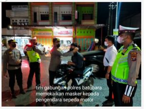 Pantauan media di lapangan, para Personil Polisi di jajaranPolres Batubara  melakukanya dengan sangat semangat dan tetap menghimbau dan memberikan masker kepada masyarakat terlihat terus di lakukan sepanjang jalan di Kota Lima Puluh tepatnya di pangkalan Stasiun Bus Lintas Sumatra, Senin malam (14/2/2022).