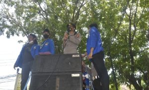Sumenep – Jurnalpolisi.id Kepolisian Resor Sumenep melaksanakan pengamanan aksi unjuk rasa PMII di depan Polres Sumenep, Rabu ( 02/02/2022 ). Aksi tersebut dilakukan oleh ratusan aktivis yang tergabung dalam Pergerakan Mahasiswa Islam Indonesia ( PMII ) Kab. Sumenep dengan Korlap Qusdiyanto dan Sekretaris Umum Ainur Dahlan dengan maksud dan tujuan untuk melakukan proses hukum terhadap media online Bongkar86 dan semua pengurusnya. Sebanyak 328 personil baik terbuka maupun tertutup Polres Sumenep diterjunkan untuk mengamankan jalannya aksi Unras di depan Polres Sumenep yang dipimpin langsung oleh Kapolres Sumenep Akbp Rahman Wijaya. Kegiatan Pengamanan Aksi Unras PMII tersebut tetap menerapkan protokol kesehatan dan pihak aparat keamanan Polres Sumenep membagikan sebanyak 200 masker kepada massa aksi yang tidak menggunakan masker. Ketika massa mulai memanas, Kapolres Sumenep Naik ke mobil komando massa PMII dan menyampaikan bahwa saat ini covid-19 itu masih ada, agar massa aksi tetap mengikuti prokes, Jajaran Polres Sumenep selalu kordinasi dengan pihak PMII dan mengamankan kegiatan PMII, kami akan tetap melakukan proses hukum sesuai prosedur hukum yang berlaku. Setelah mendengar penyampaian Kapolres Sumenep, massa aksi PMII membubarkan diri secara tertib. (MJ)
