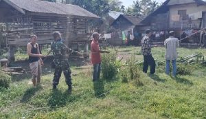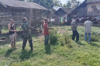 Bireuen – jurnalpolisi.id Serda Yana Maryana Babinsa Koramil 04/Peudada Kodim 0111/Bireuen bersama perangkat desa dan warga masyarakat melaksanakan gotong royong membersihkan lingkungan dengan menebang pohon yg ada di dekat rumah warga dan menghalangi jalan Desa Cot Kruet Kec. Peudada Kab. Bireuen, Selasa (08/02/2022). Gotong royong merupakan kegiatan yang dilakukan secara bersama dan tujuannya untuk meringankan beban pekerjaan. Pada kegiatan tersebut Babinsa Serda Yana M mengatakan bahwa untuk gotong royong yang dilakukan kali ini adalah menebang pohon yang berada didekat rumah warga dan menghalangi jalan desa. “Penebangan pohon ini dilakukan agar tidak menghalangi jalan dan demi keselamatan bersama saat berlalu lalang di jalan tersebut. Begitu juga dengan pohon yang letaknya dekat dengan rumah warga, mengingat cuaca saat ini tidak menentu dan angin kadang-kadang berhembus relatif kencang yang bisa berakibat tumbang dan membahayakan rumah warga,” ucapnya. Kegiatan gotong royong ini merupakan bukti nyata aparat kewilayahan terutama Babinsa dalam mewujudkan Kemanunggalan TNI dengan Rakyat. Diakhir kegiatan,Babinsa juga tidak lelah-lelahnya untuk menghimbau kepada warga agar selalu mematuhi dan mengedepankan protokol kesehatan dalam kegiatan yang berada di luar rumah mengingat masa pandemi covid-19 belum berakhir. (D’HAR)