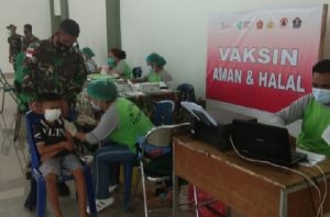 Maluku Tenggara -Jurnalpolisi.id Vaksinasi yang sudah dimulai sejak pukul 09:00 WIT pada hari ini, Kamis (17/02) dan bertempat di Mako Kompi D Ibra berjalan dengan baik Diketahui bahwa sejumlah Vaksinator yang melakukan Vaksin terdiri dari satu orang dokter dan sembilan tenaga medis lainya “Jadi untuk pelaksanaan Vaksinasi hari ini, kita mengundang langsung Vaksinator dari Dinas Kesahatan Maluku Tenggara. Dan melibatkan sepuluh Vaksinator,”ungkap PLT Danki Ibra Letda Nirwan Boyratan Berdasarkan informasi yang diterima itu, semua Vaksinator berasal dari Puskesmas Ibra wilayah kerja Dinas Kesehatan Maluku Tenggara (Malra) “Ini dilakukan, juga dalam rangka menekan Penyebaran Covid-19 berupa Varian Omivorn,”Sebut Boyratan Vaksinasi `Aman Dan Halal Batalyon ‘734 Kompi Ibra itu, juga diikuti sejumlah anak yang masih berusia `6 – 11’ Tahun dan para Ibu Persit. Selain itu, juga dilakukan Vaksin Tahap III oleh para anggota yang telah melewati fase tahap II (Vaksinasi Tahap 2_Red) Sejauh ini, belum bisa dipastikan berapa jumlah vaksin yang sudah digunakan, namun dirinya mengungkapkan bahwa terkait jumlah yang di Vaksin akan diketahui setelah kegiatan selesai. Dan hingga brita ini dipulikasikan rangkain kegiatan, berupa Vaksinasi di Kompi ‘D Ibra masih berlangsung, serta bertempat di ruang serba guna/Aula Kompi ‘D Ibra Publish by (Melky_JPN)