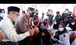 Kampar Riau – jurnalpolisi.id Vaksinasi massal serentak se Indonesia yang dipusatkan di Galatama Talaga Baru, Desa Rimbo Panjang kecamatan Tambang,Kab.Kampar Jumat, (18/02/22), sekira pukul 08.00 WIB berlangsung sukses dan lancar. Pada pelaksanaan vaksinasi serentak ini, ada hal yang begitu menarik perhatian publik, seorang kakek yang telah berusia 96 tahun dengan sadarnya datang ke lokasi vaksinasi massal untuk divaksin. Diketahui kakek atau atuk (panggilan khas Kabupaten Kampar, red) yang berusia 96 tahun itu, bernama Kutar, warga Lengkok Indah, desa Kualu Nenas kecamatan Tambang,Kab.Kampar. Pantauan di lokasi, dengan didampingi keluarganya, meski berjalan dengan bantuan tongkat penopang, Atuk Kutar tampak sangat antusias datang ke lokasi vaksinasi massal serentak untuk melaksanakan suntik vaksin. Atuk Kutar mengatakan, bahwa dirinya sengaja datang untuk divaksin dengan penuh kesadaran agar terhindar dari penyebaran dan penularan virus Covid-19. “Saya ini sudah tua, tentunya virus lebih mudah menyerang saya, untuk itu saya harus membentengi diri saya dengan vaksin. Semoga dengan telah divaksin ini, saya dapat terhindar dari penebaran dan penularan virus Covid-19,” ujar Atuk Kutar,yang berasal dari desa lengkok indah Kec.tambang Kab.Kampar ini. Dalam kesempatan ini, Atuk Kutar juga mengajak seluruh masyarakat untuk tidak takut dan tidak ragu divaksin. “Saya sudah divaksin, jangan takut dan ragu untuk divaksin, karena disuntik vaksin tidak sakit, halal, aman dan tentunya membuat kita tetap sehat dan terhindar dari covid-19,” pungkas Atuk Kutar. (Anto D)