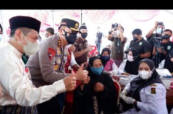 Kampar Riau – jurnalpolisi.id Vaksinasi massal serentak se Indonesia yang dipusatkan di Galatama Talaga Baru, Desa Rimbo Panjang kecamatan Tambang,Kab.Kampar Jumat, (18/02/22), sekira pukul 08.00 WIB berlangsung sukses dan lancar. Pada pelaksanaan vaksinasi serentak ini, ada hal yang begitu menarik perhatian publik, seorang kakek yang telah berusia 96 tahun dengan sadarnya datang ke lokasi vaksinasi massal untuk divaksin. Diketahui kakek atau atuk (panggilan khas Kabupaten Kampar, red) yang berusia 96 tahun itu, bernama Kutar, warga Lengkok Indah, desa Kualu Nenas kecamatan Tambang,Kab.Kampar. Pantauan di lokasi, dengan didampingi keluarganya, meski berjalan dengan bantuan tongkat penopang, Atuk Kutar tampak sangat antusias datang ke lokasi vaksinasi massal serentak untuk melaksanakan suntik vaksin. Atuk Kutar mengatakan, bahwa dirinya sengaja datang untuk divaksin dengan penuh kesadaran agar terhindar dari penyebaran dan penularan virus Covid-19. “Saya ini sudah tua, tentunya virus lebih mudah menyerang saya, untuk itu saya harus membentengi diri saya dengan vaksin. Semoga dengan telah divaksin ini, saya dapat terhindar dari penebaran dan penularan virus Covid-19,” ujar Atuk Kutar,yang berasal dari desa lengkok indah Kec.tambang Kab.Kampar ini. Dalam kesempatan ini, Atuk Kutar juga mengajak seluruh masyarakat untuk tidak takut dan tidak ragu divaksin. “Saya sudah divaksin, jangan takut dan ragu untuk divaksin, karena disuntik vaksin tidak sakit, halal, aman dan tentunya membuat kita tetap sehat dan terhindar dari covid-19,” pungkas Atuk Kutar. (Anto D)