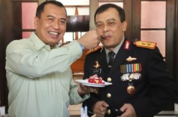 Semarang – jurnalpolisi.id Momen kemesraan terlihat ketika Kapolda Jateng, Irjen Pol Ahmad Luthfi beserta sejumlah pejabat utama dan staf mengunjungi Puri Wedari, kediaman Pangdam IV/ Diponegoro, Selasa (5/10) pagi. Hadir sedari pukul 06.30 WIB, Kapolda membawa kue ulangtahun berukuran besar bertuliskan Dirgahayu TNI ke 76, Bersatu, Berjuang, Kita Pasti Menang. Nuansa merah putih menghiasi topping kue itu bersanding dengan beberapa lilin yang siap dinyalakan. Sebetulnya, Kapolda dijadwalkan hadir mengikuti upacara HUT TNI ke 76 di Makodam, namun pimpinan kepolisian Jawa Tengah itu sengaja mengajak rombongan berbelok menuju Puri Wedari, untuk memberikan pesta kecil sebagai kejutan pada Pangdam IV / Diponegoro, Mayjen TNI Rudianto. Momen jenaka pecah ketika Pangdam membuka pintu dan terlihat kaget. Rombongan Polda yang hadir serentak menyanyikan lagu selamat ulang tahun dan menyalakan lilin. Spontan pembesar TNI Jawa Tengah itu berucap kalau dia tidak pernah merayakan ulang tahun. “Saya tidak pernah berulang tahun, baru kali ini saya diberi ulang tahun,” ujar Mayjen Rudianto disambut tawa pejabat serta staf yang hadir di kediaman Pangdam itu. Diwarnai senyum keceriaan, Pangdam menuturkan dirinya terharu melihat spontanitas dari rekan-rekan Polri. Menurutnya antara TNI dan Polri harus membangun sinergitas dan kebersamaan dalam bertugas mengabdi demi kepentingan masyarakat, bangsa dan negara. “Ini murni dari hati. Antara kita tidak ada persaingan, yang ada adalah saling membantu,” ungkap Pangdam. Saat memotong kue, Pangdam menyodorkan piring pada Kapolda. Tak hanya itu, Pangdam langsung menyuapi Kapolda dengan potongan kue ulang tahun itu. “Ini spesial untuk sahabat saya yang ini,” ungkap Mayjen Rudianto, ringan. Spontanitas Pangdam itu disambut tepuk tangan dan gurauan dari sejumlah pejabat yang hadir. Baca Juga : Polsek Kaliwungu Monitoring Vaksin Anak Handal Usia 6 Sampai 11 Tahun di SDN 1 Kutoharjo Selesai mempersiapkan diri, Pangdam Rudianto dan Kapolda Ahmad Luthfi, mengajak rombongan langsung menuju Kodam IV/Diponegoro. Di lapangan Makodam, Pangdam dan Kapolda mengikuti peringatan HUT TNI ke 76 yang dilaksanakan secara virtual dengan inspektur upacara Presiden RI, Ir H Joko Widodo. (Pewarta : Arif JPN)
