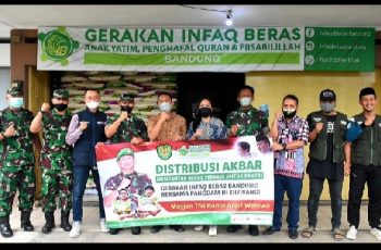 Bandung – jurnalpolisi.id Guna mewujudkan pemberdayaan warga Negara Indonesia sebagai komponen pendukung salah satu upaya pembentukan Sistim Pertahanan Semesta (Sishanta), Kodam III/Siliwangi memberikan bantuan kepada Ponpes berupa penyerahan beras sebanyak 6 ton untuk 51 Ponpes, dilaksanakan secara serentak oleh Kodim jajaran Kodam III/Slw, Sabtu (12/2/2022). Pada kali penyerahan dilakukan Kodam III/Slw sebanyak 6 ton dan selebihnya akan diserahkan oleh pihak Yayasan Baitumaal Munzailan Indonesia. Penyerahan bantuan diperuntukan bagi para Satri yang berada di Pondok Pesantren. Sementara untuk wilayah Kecamatan Cililin diserahkan oleh Aster Kasdam III/Slw Kolonel Inf Andri Amijaya Kusuma dan Kapendam III/Slw Kolonel Inf Arie Tri Hedhianto didampingi Dandim 0609/Cimahi, penyerahan dilakukan secara simbolis diterima langsung di Pondok Pesantren oleh Pimpinan Ponpes masing-masing. Kapendam III/Slw Kolonel Inf Arie Tri Hedhianto, di sela-sela kegiatannya mengatakan, kegiatan hari ini dillaksanakan atas perintah Pangdam III/Slw Mayjen TNI Kunto Arief Wibowo, tegasnya. Lanjutnnya, Kodam III/Slw ke Pondok pesantren yang dihuni para santri yang sedang mencari ilmu agama adalah wujud upaya membangun dan membina sumber daya manusia menjadi kekuatan pertahanan, sebagai komponen pendukung dalam rangka pembangunan Sishanta yaitu memaksimalkan warga negara. “Negara Indonesia memiliki beribu-ribu pulau termasuk Pulau Jawa satu diantaranya masuk dalam wilyah teritorial Kodam III/Slw yang memiliki sumber daya alam berupa hasil kekayaan laut, hasil bumi, dan yang lainnya, ini adalah karunia bagi kita. Tetapi dapat menjadi ancaman karena merupakan daya tarik tersendiri bagi negara yang berkepentingan,” terangnya. Oleh karenanya, berbagai cara dapat dilakukan baik fisik maupun non fisik dengan mempengaruhi, menekan ataupun memaksa kehendaknya. Sehingga Kodam pun perlunya berbuat dalam menyikapi hal ini secara dini melalui “Sistim Pertahanan Semesta” yang melibatkan seluruh warga negara, wilayah, dan sumber daya lainnya yang dipersiapkan secara dini dan diselenggarakan secara terpadu, terarah dan berlanjut untuk mempertahankan kedaulatan negara, keutuhan wilayah dan keselamatan segenap bangsa dari berbagai ancaman, pungkas Kolonel Inf Arie Tri Hedhianto. (Pendam III/Siliwangi)