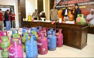 “Pasal yang disangkakan adalah UU Nomor 9 Tahun 1999 tentang Perlindungan Konsumen, ancaman hukuman maksimal lima tahun penjara atau denda paling banyak Rp2 miliar. Serta Pasal 378 KUHP tentang Penipuan, ancaman hukuman paling lama empat tahun penjara,” tandasnya. Selain mengungkap peredaran minyak goreng palsu, Polda Jateng juga berhasil mengungkap kasus penyalahgunaan LPG yang dilakukan oleh tersangka SR alias JN. Modus yang digunakan adalah dengan menyuntikkan isi gas dalam tabung LPG 3 kilo dan disalurkan ke dalam tabung 5 kilo dan 12 kilo. Perbuatan tersebut dilakukan tersangka di daerah Gondangrejo, Kab. Karanganyar. “Jadi gas LPG di tabung ‘melon’ 3 kilo yang subsidi, disuntikkan isinya ke tabung yang non subsidi yaitu 5,5 kg dan 12 kg,” terang Ahmad Luthfi. Dalam menjalankan aksinya, pelaku juga berpindah-pindah tempat kontrakan agar tidak mudah diketahui aksinya. Turut diamankan bersama pelaku barang bukti berupa ratusan tabung LPG 3 kilo, 5,5 kilo dan 12 kilo, timbangan gantung dan 1 unit mobil pick up sebagai sarana pelaku mengangkut tabung gas. Perbuatan tersangka penyalahgunaan tabung gas LPG dijerat dengan Pasal 55 UU No. 22 Tahun 2001 tentang Migas sebagaimana diubah dalam pasal 40 angka 9 UU nomor 11 tahun 2020 tentang Cipta kerja dengan ancaman pidana penjara paling lama 6 (enam) tahun dan denda paling tinggi Rp 60.000.000.000,- (enam puluh milyar rupiah).( Arif JPN )