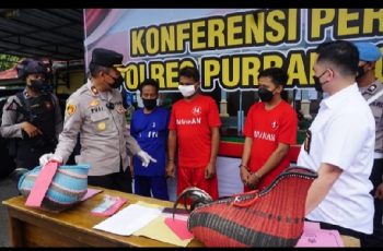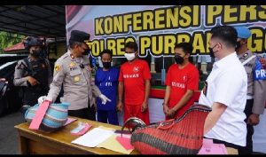 Purbalingga – jurnalpolisi.id Polres Purbalingga melakukan penggerebekan judi sabung ayam di Desa Pangempon, Kecamatan Kejobong, Kabupaten PurbaIingga. Hasilnya sejumlah orang diamankan berikut barang buktinya. Dari hasil pemeriksaan Satreskrim Polres Purbalingga, delapan orang ditetapkan sebagai tersangka. Sedangkan satu orang yang kabur saat pengerebekan masuk dalam Daftar Pencarian Orang (DPO). Wakapolres Purbalingga Kompol Pujiono saat memberikan keterangan, menyampaikan bahwa berawal dari informasi masyarakat, yang menyampaikan bahwa di wilayah Kejobong ada lokasi judi sabung ayam. Kemudian dilakukan penyelidikan dan pada Selasa (1/2/2022) siang, dilakukan penggerebekan. “Saat dilakukan penggerebekan benar ditemukan ajang judi sabung ayam di Desa Pangempon Kecamatan Kejobong. Kemudian kami mengamankan sejumlah orang berikut barang buktinya,” kata Wakapolres didampingi Kasat Reskrim AKP Gurbacov dan Kasi Humas Iptu Muslimun, Kamis (10/2/2022). Dari hasil pemeriksaan delapan orang ditetapkan sebagai tersangka. Mereka adalah SP (49) selaku pemilik arena judi sabung ayam. Selain itu, HS (52) dan DMS (20) pemilik ayam aduan dan uang taruhan. Kemudian SY (24) selaku wasit atau timer saat adu ayam. Seluruhnya merupakan warga Kecamatan Kejobong. Selain itu, JR (37) warga Desa Larangan, Kecamatan Pengadegan, RJ (34) warga Desa Nangkod, Kecamatan Kejobong, BO (35) dan NR (35) warga Kecamatan Punggelan, Kabupaten Banjarnegara. Keempat tersangka merupakan pemain judi yang ikut memasang taruhan saat adu ayam dilakukan. “Selain delapan tersangka tersebut, satu orang tersangka lainnya masih dalam pengejaran karena melarikan diri. Kepadanya ditetapkan sebagai Daftar Pencarian Orang,” jelasnya. Barang bukti yang diamankan dari para tersangka yaitu uang tunai total Rp. 800 ribu, dua kurungan ayam warna biru, dua ekor ayam jago, dua buah krusu atau tempat membawa ayam, satu telepon genggam yang digunakan sebagai timer waktu sabung ayam. Wakapolres menambahkan kepada tersangka yang mengadakan perjudian dikenakan pasal 303 ayat (1) ke-2 KUHP Jo Pasal 2 UU RI Nomor 7 Tahun 1974 tentang Penertiban Perjudian. Ancaman pasal tersebut yaitu pidana penjara selama 10 tahun. “Selain itu, kepada para pemain judi yang turut memasang taruhan dikenakan Pasal 303 bis KUHP Jo Pasal 2 UU RI Nomor 7 Tahun 1974 tentang Penertiban Perjudian dengan ancaman hukuman empat tahun penjara,” pungkasnya. Sementara itu, Kasat Reskrim AKP Gurbacov mengatakan bahwa dari delapan tersangka tiga orang dilakukan penahanan, satu orang dirawat karena sakit, satu orang DPO dan empat orang tidak dilakukan penahanan. Hal itu karena ancaman hukuman pasal 303 Bis KUHP tersebut dibawah lima tahun. “Walaupun tidak dilakukan penahanan terhadap empat tersangka yang dikenakan pasal 303 Bis tetap dalam pengawasan kami. Dan akan tetap dilakukan proses sesuai dengan ketentuan,” ucapnya. (Arif JPN)