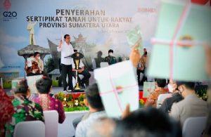 Dairi – jurnalpolisi.id Presiden Joko Widodo menegaskan bahwa sertifikat tanah penting dimiliki setiap pemilik tanah karena merupakan tanda bukti hukum atas tanah yang dimiliki. Presiden mengatakan, di dalam sertifikat tanah sudah tertulis nama pemilik beserta luas lahan yang dimiliki. Demikian disampaikan Presiden saat memberikan sambutan pada acara penyerahan sertifikat tanah untuk rakyat di Lapangan Sudirman, Kabupaten Dairi, pada Kamis, 3 Februari 2022. “Kalau Bapak sudah ada rumah di situ 20 tahun atau kebun di situ sudah lebih dari 15 tahun tapi belum punya sertifikat, orang datang, ini punya saya, punya saya, punya saya, punya saya, pegangannya mana? Ini yang namanya pentingnya kepastian hukum hak atas tanah yang namanya sertifikat,” ujar Presiden. Presiden menuturkan bahwa permasalahan sertifikat tanah menjadi perhatian karena masih adanya sengketa tanah di daerah baik antara warga dengan warga, warga dengan pemerintah, maupun warga dengan perusahaan swasta. Permasalahan ini, menurut Presiden, tidak dapat terselesaikan karena tidak adanya sertifikat tanah tersebut. “Di Sumut ini banyak sekali yang namanya sengketa di sekitar Medan, tanya Pak Gubernur, banyak sekali. Enggak rampung- rampung karena enggak pegang ini, merasa sudah menduduki 20 tahun, 15 tahun,” tutur Presiden. Untuk itu, pemerintah terus mempercepat proses pengurusan sertifikat tanah guna mengurangi konflik sengketa lahan. Kepala Negara menyampaikan bahwa target penerbitan sertifikat tanah akan terus dinaikkan setiap tahun. “Targetnya saya naikkan terus, 9 juta naik lagi, tapi kemarin pandemi turun lagi 8 juta. Tapi 8 juta gede banget dibandingkan 500 ribu ya kan,” tambahnya. Terakhir, Presiden berpesan kepada para pemilik untuk menyimpan sertifikat tanah dengan baik dan digunakan secara bijaksana. Apabila digunakan untuk agunan pinjaman ke bank, Presiden mendorong agar pinjaman tersebut digunakan sebagai modal usaha. “Mau pinjam ke bank dikalkulasi, dihitung benar-benar. Kalau sudah dapat Rp600 juta gunakan semuanya untuk usaha, untuk modal kerja, untuk investasi mesin misalnya. Jangan sekali-kali dipakai untuk barang-barang kemewahan, enggak bisa nyicil saya jamin. Harus untuk hal-hal yang produktif,” ucap Presiden. Turut hadir dalam acara tersebut Menteri Koordinator Bidang Kemaritiman dan Investasi Luhut Binsar Pandjaitan, Menteri Pariwisata dan Ekonomi Kreatif Sandiaga Uno, Menteri Agraria dan Tata Ruang/Kepala BPN Sofyan Djalil, Menteri Pekerjaan Umum dan Perumahan Rakyat Basuki Hadimuljono, Gubernur Sumatera Utara Edy Rahmayadi, dan Bupati Dairi Eddy Keleng Ate Berutu. (El Roy)Sumber : Biro Pers, Media, dan Informasi Sekretariat Presiden Website: https://www.presidenri.go.idYouTube: Sekretariat Presiden