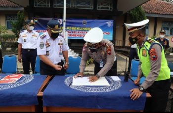 Purbalingga – jurnalpolisi.id Satlantas Polres Purbalingga membentuk satuan tugas (Satgas) Tindak Kejahatan Lalu Lintas Over Dimensi. Pembentukan dilakukan menggandeng Dinas Perhubungan Kabupaten PurbaIingga, Senin (7/2/2022) sore. Dalam kegiatan yang dilaksanakan di halaman Kantor Dinas Perhubungan Kabupaten Purbalingga, dilakukan penandatanganan komitmen bersama. Komitmen bersama dilakukan untuk melaksanakan penindakan kejahatan lalu lintas over dimensi dan pelanggaran over loading. Kasat Lantas Polres Purbalingga AKP Rizky Widyo Pratomo mengatakan hari ini dilaksanakan pembentukan Satgas Tindak Kejahatan Lalu Lintas Over Dimensi. Kegiatan ini menggandeng Dinas Perhubungan Kabupaten Purbalingga. “Dilakukan juga penandatanganan komitmen bersama dengan Dinas Perhubungan Kabupaten Purbalingga dalam rangka penindakan terhadap kejahatan lalu lintas over dimensi dan pelanggaran over loading,” ucapnya. Dalam kegiatan sekaligus dilakukan sosialisasi kepada kendaraan yang melintas tentang over dimensi dan over loading. Termasuk melakukan uji coba penggunaan timbangan portabel milik Dinas Perhubungan. Dijelaskan Kasat Lantas bahwa kejahatan over dimensi maupun pelanggaran over loading diatur dalam Pasal 277 dan Pasal 307 Undang Undang Nomor 22 Tahun 2009 tentang Lalu Lintas dan Angkutan Jalan. Kedepan menjadi komitmen bersama untuk melakukan penindakan terhadap kejahatan dan pelanggaran tersebut. “Maksud dan tujuan penindakan yang dilakukan adalah untuk memberikan kenyamanan dan keamanan serta keselamatan di jalan,” pungkasnya. Kasat Lantas menambahkan, untuk penindakan terhadap kejahatan dan pelanggaran tersebut akan dilakukan melalui kegiatan hunting maupun statis. Penindakan dilakukan untuk menekan kejahatan over dimensi dan pelanggaran over loading di wilayah Kabupaten Purbalingga. (Sambudi JPN)