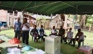 Aceh Timur – jurnalpolisi.id Babinsa Koramil 15/Peureulak Barat Kodim 0104/Aceh Timur, Pelda Darno dan Koptu Piraldi bersama panitia pemilihan Geuchik serta masyarakat melaksanakan pemilihan Geuchik Desa Beusa Baroh, Kecamatan Peureulak Barat, Kabupaten Aceh Timur, Rabu (23/02/2022). Kegiatan tersebut dihadiri oleh Babinkamtibmas, perangkat Desa, tokoh agama, tokoh masyarakat dan tokoh pemuda serta undangan lainnya. Babinsa dalam kesempatan ini, menyampaikan harapanya agar pelaksanaan pemilihan Geuchik Desa Beusa Baroh nantinya dapat berjalan dengan lancar, aman dan damai. “Mari kita sama-sama jaga dan sukseskan Pilgeuchik ini agar dapat berjalan sesuai dengan kaidah dan aturan yang berlaku sehingga dapat terwujud Pilgeuchik yang damai dan kondusif. Dirinya juga meminta kepada semua komponen masyarakat untuk ikut mendukung dan mensukseskan jalannya pesta demokrasi tersebut,” jelas Pelda Darno. Sementara Lettu Inf Syahrial selaku Danramil 15/Plkb ditempat terpisah mengatakan, “Babinsa Koramil 15/Plkb terus mengawal jalannya proses tahapan pemilihan Geuchik sejak pembentukan panitia hingga proses pemungutan suara. Pengawalan proses tahapan Pilgeuchik yang dilakukan Babinsa bertujuan untuk memberikan jaminan rasa aman serta Babinsa mampu mengantisipasi merancang sistem keamanan dan kondisi sosial di wilayah binaan dengan baik.” terang Danramil. (Zai)