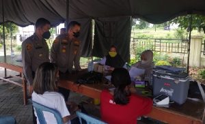 Waka Polres Kampar Monitoring Vaksinasi Massal di Wilkum Polsek Tambang.