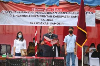 Samosir – Jurnal Polisi.id Wakil Bupati Samosir Drs. Martua Sitanggang, MM melantik dan mengambil sumpah/janji sebanyak 213 Jabatan Kepala Sekolah di lingkungan Pemerintah Kabupaten Samosir, bertempat di Halaman Kantor Bupati Samosir, Sabtu (26/2). Dari 213 Jabatan Kepala Sekolah yang diambil sumpah/jabatan pada pelantikan ini, terdiri dari 25 Kepala Sekolah SMP, 187 Kepala Sekolah SD dan 1 Kepala Sekolah TK yang berada di lingkungan Pemerintah Kabupaten Samosir. Wakil Bupati Samosir dalam sambutannya menyampaikan bahwa pengakatan PNS untuk memangku jabatan Kepala Sekolah merupakan sebuah amanah dan kepercayaan yang diberikan pimpinan, oleh karena itu sangat diperlukan pengabdian, kejujuran, keikhlasan dan tanggung jawab yang sangat besar dalam melaksanakan tugas yang dibarengi dedikasi dan loyalitas yang tinggi. “Sumpah janji yang telah saudara ucapkan mengandung keterkaitan dan keserasian dengan jabatan yang dipercayakan kepada saudara dalam melaksanakan tugas, fungsi dan tanggungjawab sebaga pelayan masyarakat untuk mewujukan Visi Kabupaten Samosir Tahun 2021-2026 yaitu ‘Terwujudnya masyarakat Samosir yang Sejahtera dan Bermartabat secara Ekonomi, Kesehatan dan Pendidikan” jelas Wakil Bupati. Wakil Bupati juga mengingatkan para pejabat yang baru saja dilantik untuk meningkatkan prestasi kerja dengan memanfaatkan waktu jam kerja yang berdaya guna dan berhasil guna, memperhatikan norma standar dan prosedur dalam menyelesaikan pekerjaan dan tetap mempedomani aturan yang berlaku, menganalisa pekerjaan dan menciptakan kesamaan visi misi dan dinamika pola berpikir di lingkungan kerja dengan pengertian membangun dan memupuk kebersamaan persaudaraan dan menumbuhkan jiwa korps untuk mencapai tujuan sasaran yang diharapkan. “Ini penting saya sampaikan, bahwa kepala sekolah itu bukan hanya pintar mengajar, kepala sekolah itu harus memiliki sifat manajerial dan kepemimpinan, bersinergitas dengan seluruh guru. Kepala sekolah perlu menilai kemampuan guru-guru agar bisa mengajar dengan baik, dan apabila ada keluhan dan informasi dari murid harus segera dievaluasi” ujar Wabup. Wabup juga menyampaikan apabila kepala sekolah sudah melaksankan hal-hal yang beliau sampaikan, berarti kepala sekolah telah memiliki sifat manajerial yang baik dalam unit kerja masing-masing demi kualitas pendidikan anak-anak Kabupaten Samosir yang lebih baik. “Akhirnya kepada bapak/ibu kepala sekolah yang baru saja dilantik, saya ucapkan selamat bertugas, semoga Tuhan Yang Maha Kuasa memberikan berkat dan karunia-Nya kepada kita semua” tutup Wabup mengakhiri sambutannya. ( D. Uli. N )