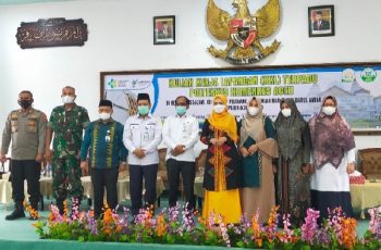 Aceh Timur – jurnalpolisi.id Bupati Aceh Timur H Hasballah Bin HM Thaib SH diwakili Sekda setempat Ir Mahyuddin, MSi menerima sebanyak 1005 mahasiswa Kuliah Kerja Lapangan (KKL) dari Politeknik kesehatan (Poltekkes) Kemenkes Aceh Tahun 2022 yang akan melakukan KKL di Aceh Timur. Kegiatan penerimaan mahasiswa KKL yang berlangsung di aula gedung Serbaguna Pemkab Aceh Timur, pada Rabu (2/3/2022) itu dihadiri Ketua Tim Penggerak PKK Provinsi Aceh Dr Ir Dyah Erti Idawati MT, Direktur Poltekkes Kemenkes Aceh T Iskandar Faisal SKP MKes, Asisten Bidang Ekonomi dan Pembangunan pada Sekdakab Aceh Timur Aiyub SKM MSi serta sejumlah kepala OPD, Camat, perwakilan Dandim, Perwakilan Kapolres, dan sejumlah tamu undangan lainnya. “Sebagaimana kita ketahui bersama, Kabuaten Aceh Timur merupakan salah satu kabupaten yang memiliki masalah stunting dengan jumlah 19,73 persen berdasarkan entrian eppBGM Tahun 2021,” ujar Bupati Aceh Timur H Hasballah bin HM Thaib SH dalam laporan tertulisnya yang dibacakan Ir Mahyuddin MSi pada kegautan itu. Sekda berharap agar mahasiswa Poltekkes Kemenkes Aceh dapat menjalankan KKL terpadu ini sesuai dengan tujuan utama yaitu, ”Percepatan Penurunan Stunting Melalui Peningkatan Kesehatan Keluarga dan Pemberdayaan Masyarakat.” Sekda Aceh Timur juga berharap agar mahasiswa dapat meningkatkan kualitas dan pengetahuan keluarga maupun masyarakat terhadap stunting atau kekurangan gizi kronis pada bayi di Aceh Timur “Sebagai kaum intelektual dan pembaharu, mahasiswa harus memperkaya diri dengan berbagai pengetahuan dan meningkatkan kualitas, sehingga dapat memberikan kontribusi pemikiran bagi suksesnya pelaksanaan pencegahan stunting,” tutur Sekda Aceh Timur Mahyuddin. Sementara Direktur Poltekkes Kemenkes Aceh T Iskandar Faisal SKP MKes turut mengucap syukur karena Pemkab Aceh Timur telah menerima mahasiswanya sebanyak 1005 orang yang akan ditempatkan di lima kecamatan dalam Kabupaten Aceh Timur atau 101 desa. “Kegiatan KKL akan berlangsung mulai 1 Maret hingga 21 Maret 2022. Tema KKL yaitu ‘Percepatan Penurunan Stunting Melalui Peningkatan Kesehatan Keluarga dan Pemberdayaan Masyarakat’. Kami siap mendukung Pemkab Aceh Timur untuk menurunkan angka stunting,” jelas T Iskandar Faisal saat menyampaikan pidatonya. Sementara itu Ketua Tim Penggerak PKK Provinsi Aceh Dr Ir Dyah Erti Idawati MT mengatakan, upaya pencegahan stunting membutuhkan kolaborasi dari semua pihak, karena tidak hanya terkait penanganan gizi dan kesehatan, tetapi juga bersangkut paut dengan masalah sanitasi, pola pengasuhan anak, ketersediaan dan keamanan pangan, pendidikan, kemiskinan, serta politik. Dyah Erti Idawati menambahkan, Penanganannya harus dilakukan secara terus menerus melalui berbagai kebijakan, kampanye dan sosialisasi. Maka dari itu, selaku pihak yang terlibat aktif dalam penanganan stunting di Aceh. “Kami juga mengajak Poltekkes Kemenkes Aceh ikut mengambil peran dalam menuntaskan segala permasalahan berkaitan stunting ini. Kegiatan KKL Terpadu ini dapat dijadikan sebagai momentum untuk melakukannya, karena adik-adik mahasiswa sebentar lagi akan turun langsung ke masyarakat,” sebut Dyah Erti Irawati. Ditambah lagi, hari ini kita juga akan mendeklarasikan Mahasiswa Peduli Stunting, “Mudah-mudahan melalui gerakan ini, adik-adik mahasiswa nantinya dapat memberikan pemahaman kepada masyaraka,” harapnya. (Zai)Sumber: Diskominfo Aceh Timur