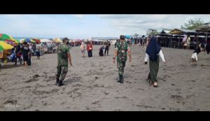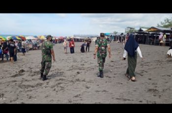 KEBUMEN – jurnalpolisi.id Babinsa Koramil 13/Buluspesantren Sertu Rahmad Bambang bersama petugas gabungan melaksanakan patroli di Obyek Wisata pantai setrojenar, Pantai Ayamputih dan pantai Bocor guna mengantisipai mewabahnya virus Covid-19 dengan varian baru Omicron. Minggu (06/03/2022) Kegiatan tersebut tidak lain untuk memberikan sosialisasi dan edukasi protokol kesehatan serta mencegah terjadinya penularan varian baru serta bertujuan agar masyarakat sehat dan memutus penyebaran virus Covid-19 dengan varian baru omicron. Kegiatan ini rutin dilakukan baik dari Anggota TNI maupun Polri dan juga instansi lainnya pada hari-hari libur guna mewujudkan masyarakat Kecamatan Buluspesantren yang aman dan bebas dari Covid-19. Babinsa Koramil 13/Buluspesantren mengharapkan kepada pengunjung meskipaun sedang berlibur atau berwisata jangan lupa tetap patuhi Protokol Kesehatan dengan menerapkan 3M, memakai masker, mencuci tangan dan jangan berkerumun, dengan demikian diharapkan dapat mewujudkan Obyek wisata yang bebas dan aman dari Covid-19 atau Omicron. (Arif JPn)