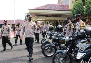 Pekalongan – jurnalpolisi.id Untuk memaksimalkan kinerja Polri dalam memberikan pelayanan kepada masyarakat, Polres Pekalongan melakukan pemeriksaan terhadap kendaraan operasional personel Bhabinkamtibmas seluruh jajaran Polres Pekalongan. Pemeriksaan atau pengecekan tersebut dilakukan di halaman Mapolres Pekalongan, Selasa (29/3/2022) pagi tadi. Kegiatan tersebut dipimpin langsung oleh Kapolres Pekalongan AKBP Dr. Arief Fajar Satria S.H., S.I.K., M.H., didampingi Wakapolres Kompol Riwayat Sosiyanto, S.H., M.Si., serta beberapa Pejabat Utama (PJU) Polres Pekalongan. AKBP Arief menjelaskan, pemeriksaan tersebut merupakan bentuk pengecekan kesiapan kendaraan operasional personel Bhabinkamtibmas. “Pemeriksaan ini sebenarnya rutin dilakukan di Polsek jajaran, namun kali ini dilakukan secara global di Polres,” katanya. Kapolres pun berpesan agar para personel menjaga kebersihan kendaraan dinas. Terutama pada kondisi mesin harus selalu diperhatikan. “Spare part harus selalu dicek, bila ada kerusakan segera dilaporkan ke bagian Sarpras agar bisa segera ditindaklanjuti,” paparnya. Sudah kita ketahui bersama bahwa, Bhabinkamtibmas adalah ujung tombak kepolisian yang harus mampu mendeteksi dini setiap permasalahan yang ada di ditengah-tengah masyarakat. Masalah sekecil apapun harus bisa dideteksi secara dini. “Dimana setiap ada permasalahan ataupun kegiatan, Bhabinkamtibmas wajib ada ditengah- tengah masyarakat,” ungkapnya. Kapolres pun menambahkan, ada tiga tantangan yang harus segera disikapi dengan serius namun tetap bijak. Yang pertama adalah antisipasi virus (Covid-19) baru omicron, yang kedua adalah antisipasi perayaan hari raya Idul Fitri 1443 H dan libur sekolah supaya tidak terjadi klaster baru, dan yang ketiga adalah pencapaian vaksinasi. “Nah ketiga hal tersebut perlu adanya peran penting pendekatan kepada masyarakat melalui Bhabinkamtibmas,” tandasnya. (Arif JPN)