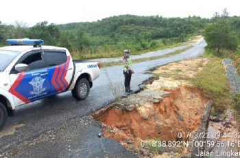 Satlantas Polres Kampar tidak henti-hentinya berupaya menjaga keselamatan pengendara di jalan raya. Salah satu upayanya adalah melakukan patroli rawan longsor di titik tertentu di wilayah hukum Polres Kampar, Selasa, (01/03/2022).