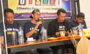 Muba – jurnalpolisi.id Karang Taruna Kabupaten Musi Banyuasin melakukan upaya untuk mewujudkan kesadaran tanggung jawab sosial setiap generasi muda. Dalam mengantisipasi, mencegah dan menangkal berbagai permasalahan sosial khusunya dikalangan generasi muda dan untuk membangun karakter generasi muda yang berpengetahuan, berkepribadian, terampil, cerdas, inovatif dan berkarya serta mengembangkan kemampuan generasi muda dalam penyelenggaraan kesejahteraan sosial. Melalui Obrolan Santai Penuh Inspirasi (OBSESI) yang diinisiasi oleh Pengurus Karang Taruna Kabupaten Musi Banyuasin masa bakti 2021-2026 bersama-sama dengan pemuda-pemuda Desa Kecamatan Bayung Lencir. Acara OBSESI dibuat untuk mendengarkan permasalahan-permasalahan dan hambatan-hambatan dalam pengembangan Karang Taruna Desa, dengan dikemas secara kekinian namun bersahaja. Pada kesempatan ini Pengurus Karang Taruna Kabupaten Musi Banyuasin dan Pengurus Karang Taruna Kecamatan Bayung Lencir menghadirkan Bung Imron, S.Sos., M.Si selaku Majelis Pertimbangan Karang Taruna sekaligus Camat Bayung Lencir didampingi oleh Bung Edy Parmasyah selaku Ketua Karang Taruna dan Bung Novriadi Sjamsuri selaku Sekretaris Karang Taruna. OBSESI kali ini pertama dilaksanakan di Kecamatan Bayung Lencir, Rabu (23/3/2022) dan telah diagendakan untuk dilaksanakan di seluruh Kecamatan dalam Kabupaten Musi Banyuasin. Pemuda – pemuda Desa disediakan forum melalui acara OBSESI ini dengan demikian Pengurus Karang Taruna Kabupaten Musi Banyuasin masa bakti 2021-2026 dapat mengetahui dan mendesain kebijakan dan program-program sesuai tingkatannya serta kebutuhannya.( Agung)