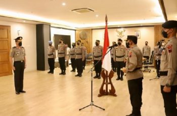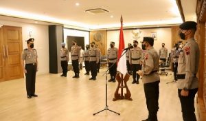 Semarang – jurnalpolisi.id Bertempat di ruang kerjanya, Kapolda Jateng Irjen Pol Ahmad Luthfi memimpin korp raport kenaikan pangkat Kepala Biro Sumber Daya Manusia (Karo SDM), Kombes Pol Iriansyah. Pria kelahiran Banjarmasin ini mendapat kenaikan pangkat setingkat lebih tinggi menjadi Brigadir Jendral. Kegiatan yang dilaksanakan sederhana dan menerapkan prokes ketat tersebut turut dihadiri Wakapolda Jateng, Brigjen Pol Abioso Seno Aji serta para PJU Polda Jateng, Selasa (08/03) pagi Kenaikan pangkat setingkat lebih tinggi dari pangkat Kombes Pol ke Brigadir Jenderal (Brigjen) Pol tersebut diberikan pada Iriansyah sebagai penghargaan atas kinerja biasa serta pengabdian tanpa cacat yang diberikan hingga menjelang masa purna tugasnya. “Pak Karo SDM (Brigjen Iriansyah) telah memberikan suatu kontribusi yang luar biasa sekali, dan ini jarang terjadi disaat menjelang purna tugas. Ini sangat sempurna, sehingga pantas mendapat penghargaan kenaikan pangkat menjadi Brigjen,” kata Irjen Ahmad Luthfi dalam sambutannya. Kapolda menambahkan, dirinya mengetahui persis dedikasi dan loyalitas Brigjen Iriansyah dalam bekerja serta merasa bangga atas torehan prestasi yang dihasilkan selama ini. Kapolda berpesan agar capaian luar biasa tersebut perlu ditiru dan dijadikan panutan oleh anggota Polri yang lain. Lebih lanjut Irjen Ahmad Luthfi berharap walaupun nantinya memasuki masa purna tugas agar Brigjen Iriansyah terus produktif dan melahirkan banyak inovasi positif di tengah masyarakat. “Tetaplah produktif dengan berbagai kegiatan positif baik di internal keluarga maupun di tengah masyarakat,” jelas Kapolda Di akhir amanat, Kapolda meminta agar Brigjen Pol Iriansyah tetap menjalin komunikasi dan tali silaturahmi dengan keluarga besar Polda Jateng. “Saya berharap dimanapun dan apapun aktivitas kita, komunikasi dan silaturahmi harus tetap terjaga. Kita saudara selamanya,” ungkap Kapolda. (Arif JPN)
