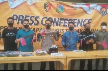 CILEGON BANTEN – jurnalpolisi.id Kapolres Cilegon Polda Banten AKBP Sigit Haryono, Sik, SH , adakan komprensi pers terkait kejahatan penjualan anak di bawah umur, serta Perkelahian antara Superter Bola di kp Temuputih Cilegon Kota Banten. Dari keterangan pers tadi sore 08/03/2022 di halaman Polres Cilegon kota , Kapolres Cilegon Polda Banten AKBP Sigit Haryono, Sik, SH , mengatakan bahwa dari ke Dua ( 2 ) kasus tersebut para Tersangka telah di tangkap dan di amankan beserta barang bukti HP dan sejumlah Sajam ( senjata tajam ). Lebih lanjut Kapolres Cilegon Polda Banten AKBP Sigit Haryono, Sik, SH, menambahi juga kasus perkelahian antara suporter di Kp.Temuputih Kota Cilegon ini masih dalam pihak Penyelidikan.