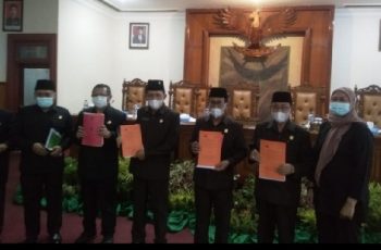 TULUNGAGUNG – jurnalpolisi.id DPRD Tulungagung, Rabu (23/3/ 2022 ) siang, menggelar rapat paripurna dengan agenda penyampaian Laporan Keterangan Pertanggungjawaban Bupati Tulungagung akhir tahun anggaran 2021.Rapat paripurna LKPJ tersebut berlangsung di di Ruang Graha Wicaksana Lantai II Kantor DPRD Tulungagung. Juru Bicara Pansus Kode Etik dan Tata Beracara BK, Heru Santoso MPd, saat membacakan laporan hasil pembahasan pansus.Juru Bicara Pansus Kode Etik dan Tata Beracara BK, Heru Santoso MPd, saat membacakan laporan hasil pembahasan pansus.Selain itu, dalam rapat paripurna yang dipimpin Ketua DPRD Tulungagung, Marsono SSos, dan dihadiri Bupati Tulungagung, Drs Maryoto Birowo MM.tersebut juga beragenda penyampaian rancangan peraturan daerah (ranperda) inisiatif dari DPRD Tulungagung. Disamping pula penetapan Peraturan DPRD Tulungagung tentang Kode Etik dan Peraturan DPRD Tulungagung tentang Tata Beracara Badan Kehormatan (BK). Adapun ranperda inisiatif dewan yang disampaikan di rapat paripurna masing-Perwakilan fraksi menyampaikan pandangan akhir mereka terkait penetapan dua peraturan dewan pada pimpinan DPRD Tulungagung dan Bupati Maryoto Birowo.Perwakilan fraksi menyampaikan pandangan akhir mereka terkait penetapan dua peraturan dewan pada pimpinan DPRD Tulungagung dan Bupati Maryoto Birowo.Masing masing adalah Ranperda tentang FasilitasiPenyelenggaraan Pesantren, Ranperda tentang Fasilitasi Penyaluran Pupuk Bersubsidi, Ranperda Perubahan atas Peraturan Daerah Nomor 9 Tahun 2017 tentang Penyelenggaraan Usaha Perindustrian dan Perdagangan serta Ranperda tentang Pengelolaan Teknologi dan Informasi.( HARI )