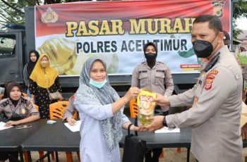 Kapolres Aceh Timur AKBP Mahmun Hari Sandy Sinurat, S.I.K. yang ikut melayani warga membeli mengatakan, kita mengelar pasar murah khusus minyak goreng, karena saat ini masyarakat mulai kesulitan mendapatkan minyak goreng, kalau toh pun ada harganya sangat tinggi. Untuk itu kami Polres Aceh Timur menggelar pasar murah dalam rangka membantu masyarakat.
