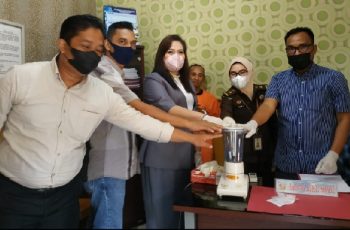 KAMPAR,– jurnalpolisi.id Satuan Reserse Narkoba Polres Kampar lakukan pemusnahan barang bukti narkotika jenis shabu, pada Selasa Pagi (8/03/2022) sekira pukul 10.00 Wib bertempat di ruang Sat Resnarkoba Polres Kampar Pemusnahan barang bukti narkotika ini dipimpin Kasat Resnarkoba AKP Daren Maysar SH, yang hadir Perwakilan Pengadilan Negeri Bangkinang Petra Jeanny Siahaan, S.H., M.H, Perwakilan Kejaksaan Negeri Kampar Dewi Anggraini SH, MH, Kasat Tahti Iptu Alreflus, Penasehat hukum dan para tersangka yang terkait dengan barang bukti ini. Selanjutnya pembacaan kronologi ungkap kasus oleh Kasatres Narkoba AKP Daren Maysar SH, disampaikan Daren bahwa narkotika yang dimusnahkan Shabu seberat 5,28 gram. Narkotika yang akan dimusnahkan ini berasal dari 1 kasus yang diungkap Satresnarkoba Polres Kampar di Desa Kampung Pinang Kec.Perhentian Raja Kab.Kampar dari tersangka, yaitu MA alias KE (52) warga Muara Fajar Barat Kecamatan Rumbai Kota Pekanbaru. Selanjutnya dilakukan pemusnahan barang bukti narkotika, dimana untuk narkotika jenis shabu seberat 5 28 gram dimusnahkan dengan cara dilarutkan dalam air, lalu diblender dan dibuang ketanah. Usai pemusnahan barang bukti narkotika ini dilakukan penandatanganan Berita Acara Pemusnahan oleh Kasatres Narkoba, serta para saksi yang hadir termasuk para tersangka yang terkait dengan barang bukti ini. Kegiatan pemusnahan barang bukti narkotika ini berakhir pada pukul 11.00 Wib dan seluruh rangkaian acara berlangsung dengan lancar serta tetap menerapkan protokol kesehatan (Anto.D)
