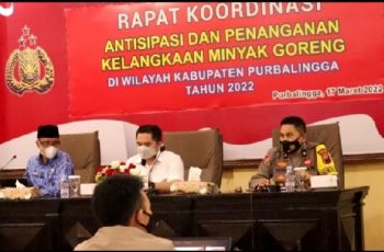 Purbalingga – jurnalpolisi.id Polres Purbalingga melalui satuan tugas yang telah dibentuk akan menindak tegas pelaku permainan atau penimbunan minyak goreng. Hal itu disampaikan Kabag Operasi Polres Purbalingga Kompol Totok Nuryanto dalam Rapat Koordinasi Antisipasi dan Penanganan Kelangkaan Minyak Goreng di Mapolres, Kamis (17/3/2022). “Kami akan melakukan pengecekan secara langsung kepada distributor minyak goreng yang ada di Purbalingga. Apabila ditemukan ada pelanggaran maka akan dilakukan penindakan tegas sesuai dengan hukum yang berlaku,” tegasnya. Disampaikan bahwa hari ini digelar rapat koordinasi menghadirkan Dinas Perindustrian dan Perdagangan serta pelaku usaha dan distributor minyak goreng. Tujuannya memberikan pemahaman agar para pelaku usaha atau distributor tidak memanfaatkan situasi untuk melakukan pelanggaran hukum terkait minyak goreng. “Sejumlah tindakan seperti permainan harga maupun penimbunan minyak goreng tidak diperbolehkan,” katanya. Dijelaskan bahwa pihak kepolisian maupun dinas perindustrian dan perdagangan telah membentuk satgas terkait adanya kelangkaan minyak goreng. Tugasnya melakukan pengecekan secara langsung di wilayah Kabupaten Purbalingga terkait kelangkaan minyak goreng. Rapat koordinasi dihadiri oleh Kabag Operasi Polres Purbalingga Kompol Totok Nuryanto, Kepala Dinas Perindustrian dan Perdagangan (Dinperindag) Johan Arifin, serta Kasat Reskrim AKP Gurbacov. Sedangkan peserta kegiatan adalah para pangusaha dan distributor minyak goreng, perwakilan toko modern dan kepala UPTD Pasar di Kabupaten Purbalingga. ( Arif JPN )