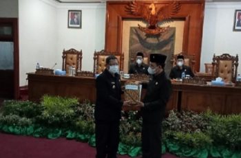 Tulungagung – jurnalpolisi.id Rapat paripurna DPRD Tulungagung dengan agenda penyampaian Laporan Keterangan Pertanggungjawaban Bupati Tulungagung akhir tahun anggaran 2021, berlangsung di Ruang Graha Wicaksana, Lantai II Kantor DPRD Tulungagung. Rabu (23/3/2022) siang. Dalam rapat paripurna yang dipimpin Ketua DPRD Tulungagung, Marsono S.Sos, dan dihadiri Bupati Tulungagung, Drs Maryoto Birowo, M.M, tersebut juga beragenda penyampaian rancangan peraturan daerah (ranperda) inisiatif dari DPRD Tulungagung, serta penetapan Peraturan DPRD Tulungagung tentang Kode Etik dan Peraturan DPRD Tulungagung tentang Tata Beracara Badan Kehormatan (BK). Adapun ranperda inisiatif dewan yang disampaikan di rapat paripurna masing-masing adalah Ranperda tentang Fasilitasi Penyelenggaraan Pesantren, Ranperda tentang Fasilitasi Penyaluran Pupuk Bersubsidi, Ranperda Perubahan atas Peraturan Daerah Nomor 9 Tahun 2017 tentang Penyelenggaraan Usaha Perindustrian dan Perdagangan serta Ranperda tentang Pengelolaan Teknologi dan Informasi. Ketua DPRD Tulungagung, Marsono, dalam kesempatan tersebut menyampaikan, berdasarkan hasil rapat Badan Musyawarah pada hari Kamis 17 Maret 2022 telah disepakati bahwa, pelaksanaan Rapat Paripurna DPRD Kabupaten Tulungagung dalam rangka Penyampaian LKPJ Bupati Tulungagung Akhir Tahun Anggaran 2021 dan Ranperda lainnya, serta Penetapan Peraturan DPRD Tentang Kode Etik DPRD dan Peraturan DPRD Tentang Tata Beracara Badan Kehormatan, yang dijadwalkan pada hari ini Rabu tanggal 23 Maret 2022. Dalam rapat tersebut, Andri Santoso membacakan terkait hasil reses tentang sosialisasi kepada masyarakat terdampak, diantaranya rencana proyek jalan tol Tulungagung–Kepanjen, melambungnya harga minyak goreng, penggunaan dana hibah masjid dan mushola, kelangkaan pupuk bersubsidi di musim tanam dan bantuan sarana prasarana kesenian. Sementara itu, Bupati Tulungagung Maryoto Birowo, dalam sambutannya mengatakan, sesuai dengan amanat UU 23 tahun 2014 dan peraturan pemerintah no 13 tahun 2019 ditegaskan bahwa Kepala Daerah mempunyai kewajiban untuk menyampaikan laporan keterangan pertanggungjawaban kepada DPRD paling lambat 3 bulan setelah tahun anggaran berakhir. “Untuk itu pada kesempatan ini saya sampaikan LKPJ Bupati Tulungagung akhir tahun 2021,” tutur Bupati Maryoto Birowo. Lanjut Bupati menyampaikan laporan keterangan pertanggungjawaban (LKPJ) pada akhir tahun anggaran 2021, penyerahan Ranperda tentang persetujuan bangunan gedung dan Ranperda lainnya. Realisasi pelaksanaan program dan kegiatan selama tahun 2021 disampaikannya melalui indikator kinerja utama. “Indikator pertama indek pembangunan manusia (IPM) tahun 2020 sebesar 73, tahun 2021 meningkat menjadi 73,15 atau meningkat sebesar 0,15 masuk pada kategori tinggi,” sambungnya. Indikator selanjutnya adalah pertumbuhan ekonomi, dimana sebagai dampak adanya Pandemi Covid-19 pertumbuhan ekonom tahun 2020 mengalami kontraksi sebesar 3,09 persen. Namun demikian berkat kerjasama dengan seluruh stakeholder pembangunan, tahun 2021 pertumbuhan ekonomi di Kabupaten Tulungagung berhasil mendekati kondisi normal menjadi 3,53 persen. Angka PDRB atas dasar hak berlaku (ADHB) mengalami kenaikan dari 38,225 trilyun rupiah pada tahun 2022 menjadi 40,166 trilyun rupiah pada tahun 2021 atau naik sebesar 1,941 trilyun rupiah. lanjutnya mengungkapkan, angka kemiskinan dari sebesar 7,33 persen pada tahun 2020 menjadi sebesar 7,51 persen pada tahun 2021 atau meningkat sebesar 0,18 persen. Namun demikian angka kemiskinan ini masih di bawah angka kemiskinan nasional yaitu 9,71 persen dan Provinsi Jawa Timur sebesar 11,40 persen. Indikator selanjutnya adalah persentase desa yang mendapat layanan Infrastuktur dasar berkualitas mencakup akses jalan, air minum, sanitasi, perumahan dan persampahan. Penyertaan modal pemerintah kabupaten Tulungagung pada Perusahaan Umum Daerah Air Minum (Perumdam) Kabupaten Tulungagung dalam rangka meningkatkan pelayanan air minum pada masyarakat melalui pemberian bantuan dari pemerintah yang dilakukan dengan pengalokasian anggaran pendapatan dan belanja daerah Kabupaten Tulungagung kepada Perusahaan Umum Daerah Air Minum “Tirta Cahya Agung” dalam bentuk penyertaan modal pemerintah daerah. Selain itu, Ranperda ini disusun guna mendapatkan program Nasional Urban Water Supply Project (NUWSP) dari pemerintah pusat, sehingga berdasarkan pertimbangan tersebut perlu membentuk Ranperda tentang perubahan ketiga atas Peraturan Daerah Nomor 9 tahun 2012 tentang Penyertaan Modal Pemerintah Kabupaten Tulungagung pada Perumdam. “Indeks Birokrasi Reformasi guna mewujudkan pemerintah yang akuntabel, profesional dan transparan,” pungkasnya. Acara dilanjutkan dengan pengumuman keanggotaan Panitia Khusus DPRD Kabupaten Tulungagung, Panitia Khusus Pembahas Rancangan Peraturan Daerah Masa Sidang II Tahun Sidang III (Periode Januari-April 2022 ), sebagai berikut: I. PANSUS I, membahas : Ranperda tentang Fasilitasi Penyelenggaraan Pesantren, dan Ranperda tentang Perubahan Keempat Atas Perda Nomor 5 Tahun 2011 tentang Pembentukan dan Penyelenggaraan Badan Penanggulangan Bencana Daerah. II. PANSUS II, membahas : Ranperda tentang Fasilitasi Penyaluran Pupuk Bersubsidi, dan – Ranperda tentang Persetujuan Bangunan Gedung. III. PANSUS III, membahas :Ranperda tentang Perubahan Atas Perda Nomor 9 Tahun 2017 tentang Penyelenggaraan Usaha Perindustrian dan Perdagangan: dan Ranperda tentang Perubahan Ketiga Atas Perda Nomor 9 Tahun 2012 tentang Penyertaan Modal Pemerintah Kabupaten Tulungagung pada PDAM Tulungagung. IV .PANSUS IV, membahas : Ranperda tentang Pengelolaan Teknologi dan Informasi: dan – Ranperda tentang Perubahan Atas Peraturan Daerah Nomor 10 Tahun 2011 Tentang Penyelenggaraan Perparkiran di Kabupaten Tulungagung. (Hari)