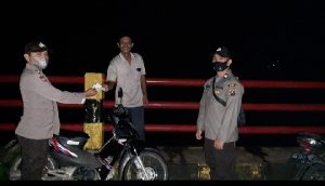 Gunungsitoli – jurnalpolisi.id Seakan tidak mengenal waktu siang dan malam, demi tegaknya Disiplin Protokol Kesehatan, Personil Polsek Idanogawo Polres Nias BRIPTU B. Ndruru dan BRIPTU P. Gori, membagikan Masker kepada Warga yang tidak menggunakan Masker di Desa Saiwahili Kec. Idanogawo Kab. Nias, Senin malam (14/03/2022). BRIPTU B. Ndruru dan BRIPTU P. Gori yang melaksanakan Tugas Piket malam melakukan Patroli di Desa Saiwahili Kec. Idanogawo Kab. Nias dengan Mengendarai Sepeda Motor dan ditengah perjalanan tepatnya diatas Jembatan Idanogawo mendapatkan adanya Warga nongkrong sambil duduk pada tiang besi pembatas jembatan dan tidak menggunakan Masker. Kedua Personil Polsek Idanogawo tersebut kemudian turun dari Sepeda Motor dan menyapa warga yang nongkrong di Jembatan, sambil mengobrol seadanya Briptu B. Ndruru memberikan Himbauan agar Tetap mematuhi Protokol Kesehatan karena sekarang ini kita masih dihadapkan dengan Pandemi Covid-19 kemudian Briptu P. Gori memberikan Masker untuk dipakai agar terhindar dari Virus Covid-19. Kapolsek Idanogawo Iptu Y. Lase mengatakan, bagi Personil yang melaksanakan Piket malam Kita perintahkan untuk melaksanakan Patroli dan sekaligus Penegakan Disiplin Protokol Kesehatan disekitar Kota Idanogawo kepada Warga Masyarakat yang kedapatan tidak menggunakan Masker. “ Kepada Personil Polsek Idanogawo yang melaksanakan Piket malam, kita perintahkan untuk melaksanakan kegiatan Patroli memantau situasi Kamtibmas dan Penegakan Disiplin Protokol disekitar Kota Idanogawo dan membagikan Masker kepada Warga Masyarakat yang kedapatan tidak menggunakan Masker “, Pungkas Kapolsek Idanogawo. Tujuan kita melaksanakan Patroli dan Penegakan Disiplin Protokol Kesehatan tersebut untuk memantau situasi Kamtibmas dan agar Masyarakat sadar dan Patuh akan pentingnya mematuhi Protokol Kesehatan yang dianjurkan oleh Pemerintah, yaitu dalam rangka mencegah dan memutus mata rantai penyebaran Virus Covid-19 demi keselamatan kita bersama. “ Kita melaksanakan Kegiatan Patroli untuk memantau situasi Kamtibmas dan menegakkan Disiplin Protokol Kesehatan agar masyarakat sadar dan Patuh akan pentingnya mematuhi Protokol Kesehatan yang dianjurkan oleh Pemerintah, dalam rangka mencegah dan memutus mata rantai penyebaran Virus Covid-19 demi keselamatan kita bersama “ ungkap Kapolsek Idanogawo mengakhiri. Rusman Zendrato.