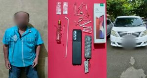 Selain itu petugas juga menyita 1 (Satu) buah kardus bekas bungkus Handphone warna putih  bertuliskan Oppo A3s yang berisi 11 (Sebelas) pipet kaca, 4 (Empat) buah cutton bud, 6 (Enam) potongan selang transparan, 3 (Tiga) gulungan alumunium foil, 1 (Satu) potongan sedotan yang ujungnya dibuat runcing warna putih kombinasi merah dan kuning, 1 (Satu) potongan sedotan warna putih, 1 (Satu) buah celana panjang jeans warna biru dan 1 (Satu) KBM TOYOTA ALPHARD warna putih.