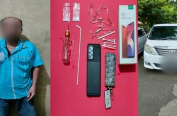 “Dari tersangka ditemukan barang berupa 1 (Satu) plastik klip transparan yang berisi serbuk kristal yang diduga Narkotika Golongan I jenis sabu dengan berat bruto 1.2 gram, 1 (Satu) plastik klip transparan yang berisi serbuk kristal yang diduga Narkotika Golongan I jenis sabu dengan berat bruto 0.8 gram, 1 (Satu) buah Bong alat hisap Narkotika jenis sabu terbuat dari kaca yang terhubung dengan sedotan warna putih dan pipet kaca,” papar Kasat Narkoba.