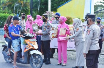 Menjelang berbuka puasa di Bulan Suci Ramadhan, Polres Bintan melaksanakan pembagian Takjil kepada masyarakat Kabupaten Bintan pada Sabtu sore (16/4/22).