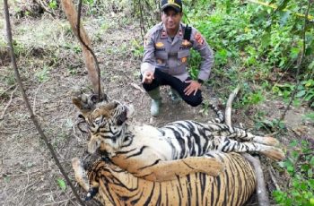 “Dugaan sementara kedua harimau tersebut mati terkena jeratan babi, karena saat ditemukan kondisi kaki kedua harimau tersebut terjerat dengan jenis jerat kawat tebal atau yang biasa disebut sling.” Sebut Kapolsek.