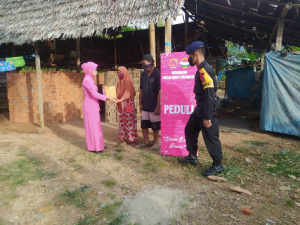 Personel Satuan Brimob Polda Sulawesi Tenggara (Sultra) bersama dengan Bayangkari anak Ranting Kompi 1 Batalyon C Pelopor membagikan bantuan berupa paket sembako pada kegiatan bansos. Bantuan berupa sembako diberikan kepada warga kurang mampu menjelang Lebaran yg Idul Fitri 1443 H/2022 M pada hari Kamis (28/4/2022).