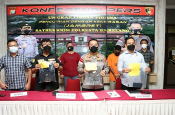 Kapolresta Barelang Kombes Pol Nugroho Tri N, SH, SIK, MH Menggelar Konferensi Pers Ungkap Pelaku Tindak Pidana Pencurian dengan Kekerasan (Jambret) yang di dampingi oleh Kasat Reskrim Polresta Barelang Kompol Abdul Rahman, SH, SIK, MH, Kasi Humas AKP Tigor Sidabariba, SH dan Kanit Reskrim Polresta Barelang Iptu Thetio Nargianto, SH bertempat di Lobby Mapolresta Barelang. Kamis (21/04/2022) sekira pukul 14.00 WIB.