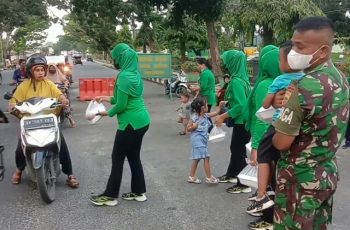 Persit Kartika Candra Kirana (KCK) Kompi Senapan C Batalyon Infanteri (Yonif) 126/KC Rantauprapat, Kabupaten Labuhanbatu, Sumut laksanakan giat bhakti sosial pembagian 1000 paket menu berbuka puasa atau takjil kepada para pengguna jalan.