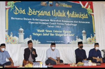 Polres Purbalingga menggelar kegiatan Doa Bersama Untuk Indonesia dalam rangka menghadapi Operasi Ketupat Candi tahun 2022, Selasa (26/4/2022) sore. Kegiatan dilaksanakan di halaman Kantor Satlantas Polres Purbalingga, dengan tema Bersama dalam Keberagaman Memohon Keamanan dan Kelancaran Operasi Ketupat Candi 2022 Polres Purbalingga.