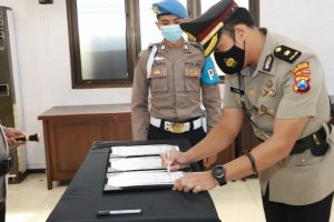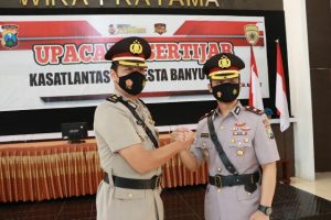 Serah terima jabatan (Sertijab) dipimpin langsung oleh Kapolresta Banyuwangi, Kombes Pol Nasrun Pasaribu di Aula Rupatama Wira Pratama Polresta Banyuwangi, Senin (18/4/2022).