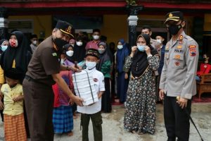 “Terimakasih, Alhamdulillah,” sahut salah satu warga saat menerima makanantakjil sambil melempar senyuman kepada para Forkopimda.