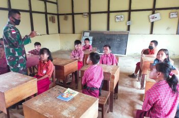 Anggota Satgas Pamtas RI-Malaysia Yonif 144/JY Cerdaskan Anak bangsa menjadi tenaga Pendidik bahasa Inggris di SDN 02 desa jasa Kecamatan Ketungau Hulu Kabupaten Sintang Kalbar.