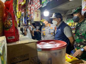 Kapolres Metro Jakarta Barat Kombes Pol Pasma Royce bersama Forum Kordinasi Pimpinan kota (Forkopimko) turun ke pasar PD Jaya Cengkareng Jakarta Barat, Sabtu, 28/5/2022.