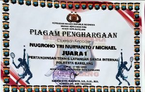 Dan dimenangkan oleh Kapolresta barelang bersama Mike dengan skore 6-1, 6-1. sehingga turnamen tersebut dijuarai oleh Kapolresta Barelang / Mike dan Juara 2 diraih oleh kasat lantas / guntur, sedangan untuk Juara Ke 3 diraih oleh Odok / hendrik dan di berikan piagam, cinderamata & uang pembinaan oleh Kapolresta Barelang.