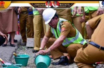 Peletakan Batu Pertama Pembangunan Trotoar di Ruas Jalan Ibu Kota Nias Barat