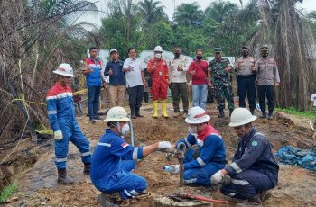 Polres Aceh Timur Kawal Kegiatan Penutupan Sumur Minyak Tradisional di Ranto Peureulak.