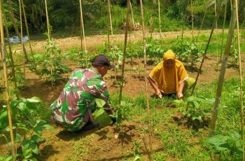 Guna memaksimalkan hasil kebun, Satgas Pamtas Yonif Mekanis 643/Wns melakukan pendampingan terhadap tanaman kacang panjang milik warga Dusun Lubuk Tengah, Desa Lubuk Sabuk, Kec. Sekayam, Kab. Sanggau.