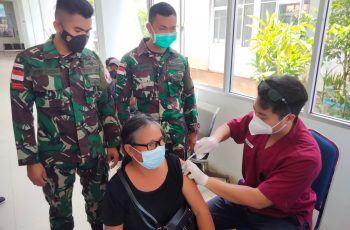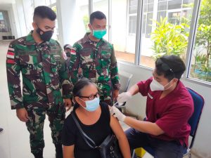 Letda Inf Ferly Ardiansyah beserta dua puluh delapan orang melaksanakan Vaksinasi booster agar terhindar dari Penyebaran Covid-19 dan kita juga membantu Nakes Puskesmas serta bersinergi dengan Polri atas terselenggaranya kegiatan Vaksinasi Covid-19 ini.
