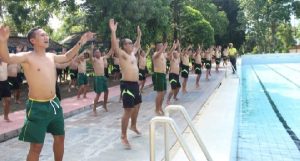 Kesegaran jasmani tersebut meliputi tes kesegaran A berupa lari dengan waktu 12 menit dan tes kesegaran B berupa pull up, twis sit up, push up, dan lunges dengan durasi 1 menit serta shuttle run dengan durasi kecepatan waktu, ditambah dengan ketangkasan renang jarak 50 meter.